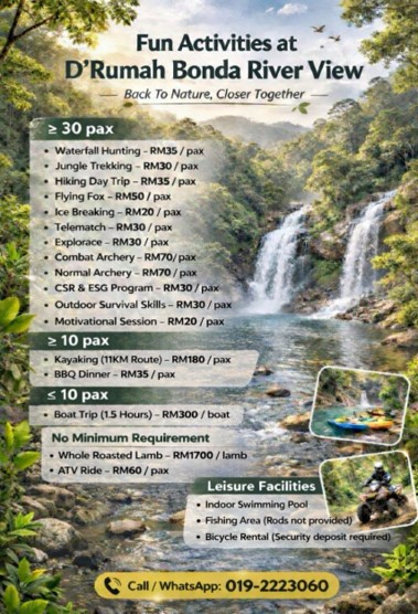 Make the most of exclusive deals and special offers at D’Rumah Bonda River View Resort, and enjoy a relaxing stay filled with comfort, privacy, and memorable moments in a peaceful riverside setting.
