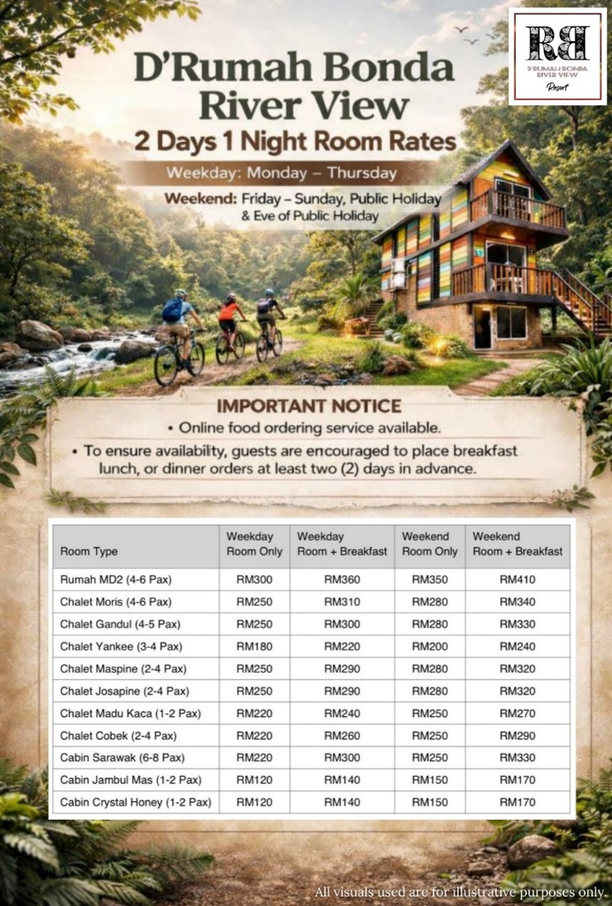 D’Rumah Bonda River View – 2 Days 1 Night Room Rates